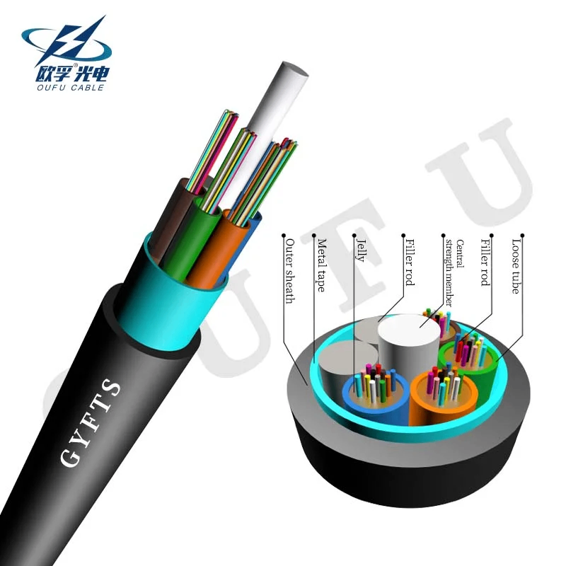 Loose tube stranding, Non-metal strength member, Flooding jelly compound, Steel-polyethylene adhesive sheath